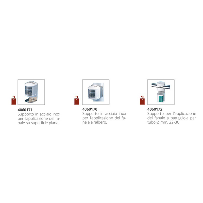 Fanali in policarbonato resistenti ai raggi UV classe di protezione IP56 completi di attestato di omologazione RI.Na. e lampadina 12V, dim. mm. 74 x 58 x 54 sporgenza, per imbarcazioni inferiori a mt. 12