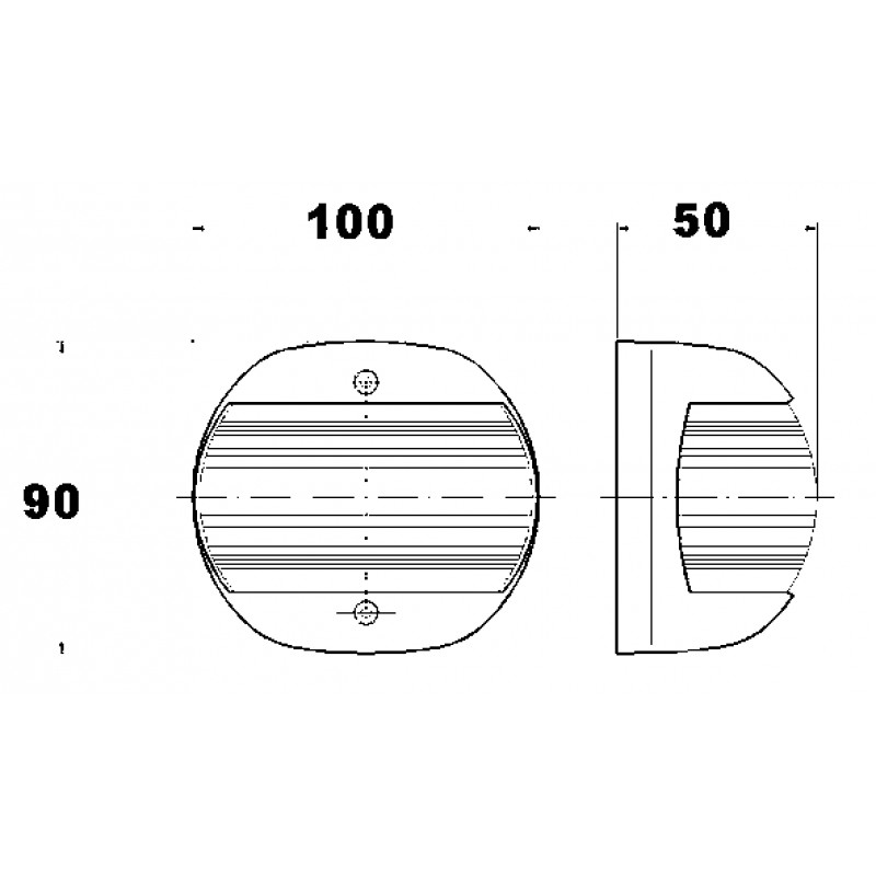 Fanali di via in policarbonato resistenti ai raggi UV classe di protezione IP56 completi di attestato di omologazione RI.Na. e lampadina 12V. Dim. mm. 100 x 90 x 50 sporgenza per barche inferiori a 20 mt
