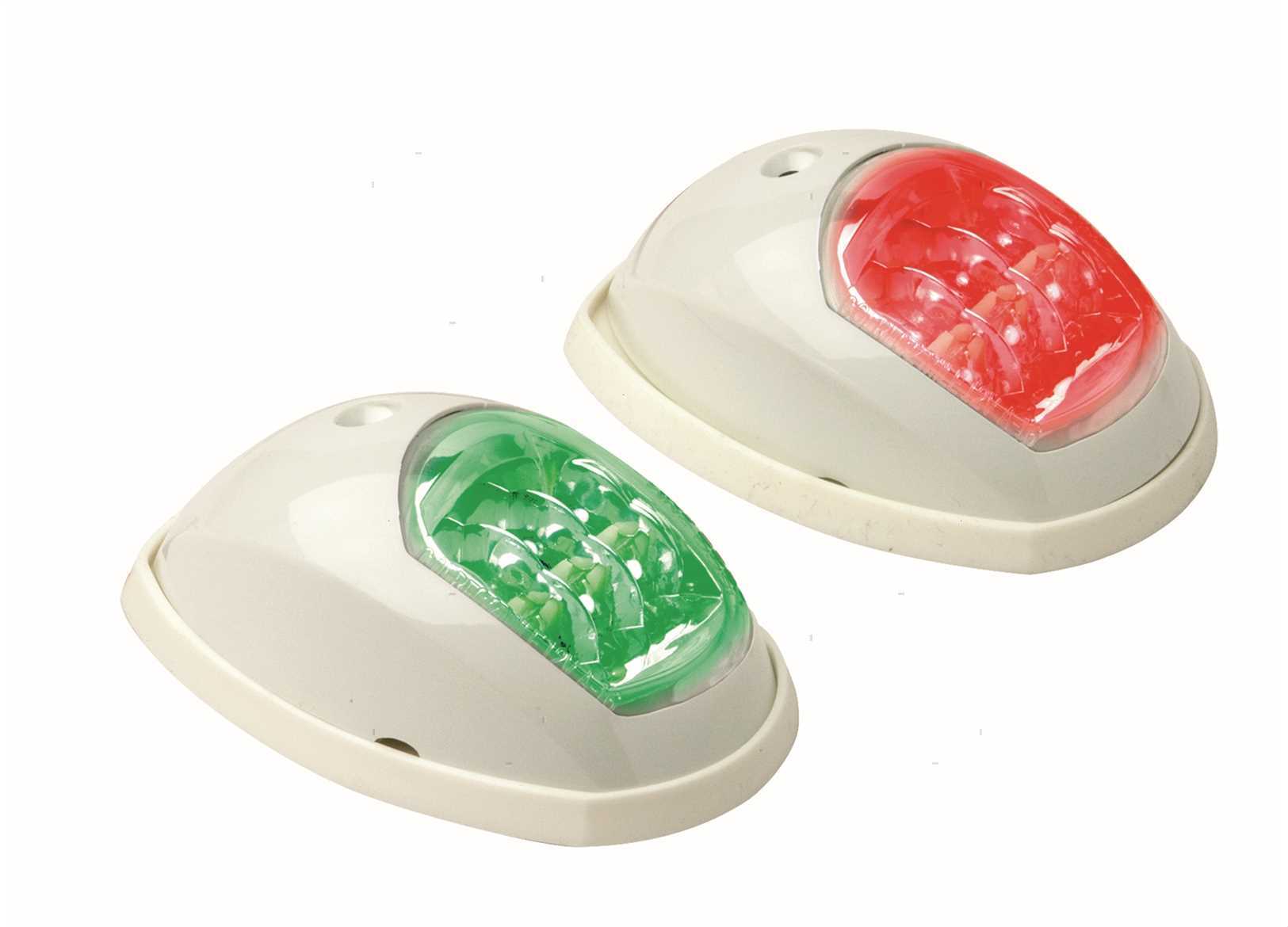 Coppia fanali di navigazione LED con cassa in Plastica rinforzata. ↵A normativa CE/IMO/COLREG 72/ABYC/NMMA. ↵Dimensioni: 100 x 60 x H36 mm.