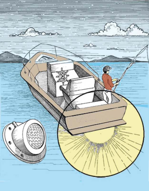 Completi di Sealed Beam 14.249.07/08. Si fissano sotto la plancetta per illuminare la superficie dell’acqua. Già completi di 1,20 m di cavo d’alimentazione.