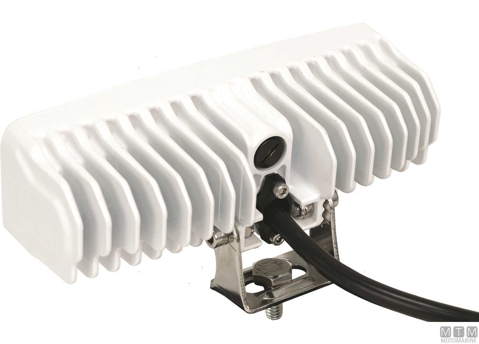 Faretto LED da coperta e da pozzetto impermeabile IP68 a luce diffusa. Cassa in lega di Alluminio laccata bianca, staffa in Acciaio Inox e lenti in Policarbonato. Voltaggio 10-30V. LED Osram S5 36 x 1W. Lumen 61120. Luce bianca 5700°K.