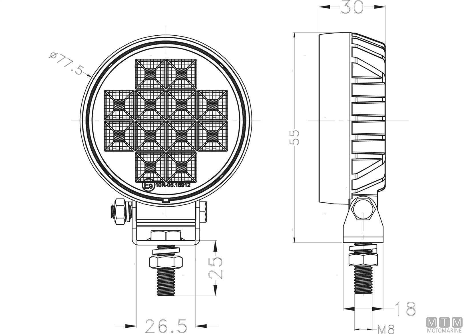 Faretto da coperta e pozzetto impermeabile IP68. Bulbo con LED Osram a luce diffusa.↵Cassa in lega di Alluminio resistente alla corrosione con staffa in Acciaio Inox,↵Voltaggio 9-32V. Potenza 16W. Lumen 1200. Luce bianca 6000°K.Completo di base in Acciaio Inox, guarnizione a frizione antivibrante e viteria Inox.