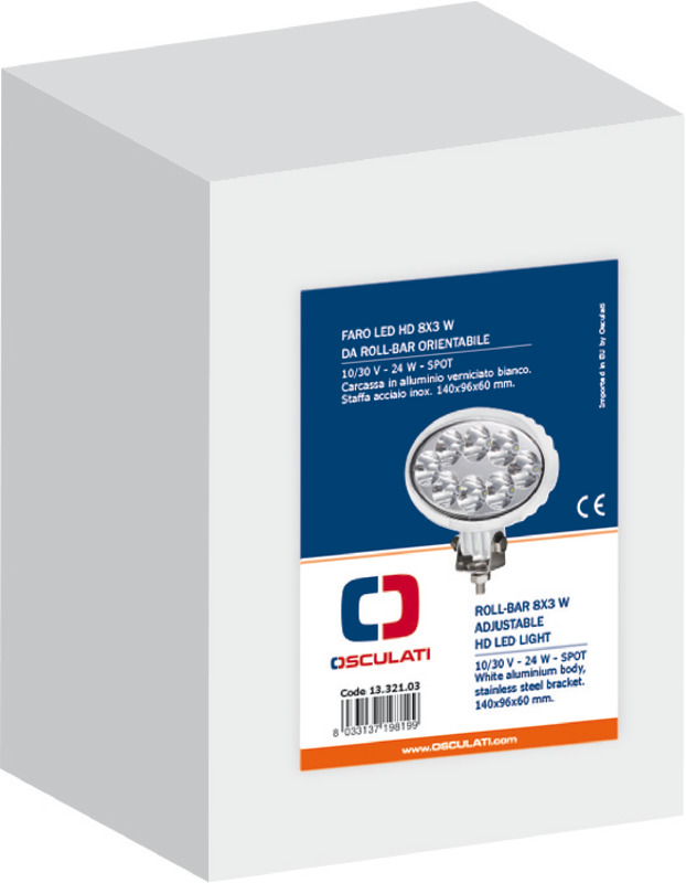 Carcassa in alluminio verniciato bianco. Staffa in acciaio inox.