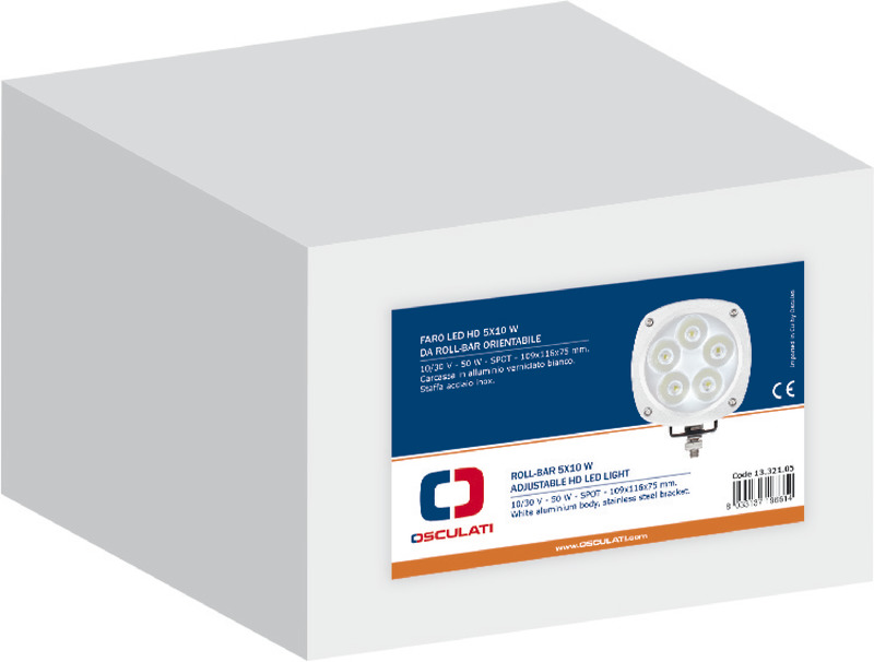 Carcassa in alluminio verniciato bianco. Staffa in acciaio inox lucidato.