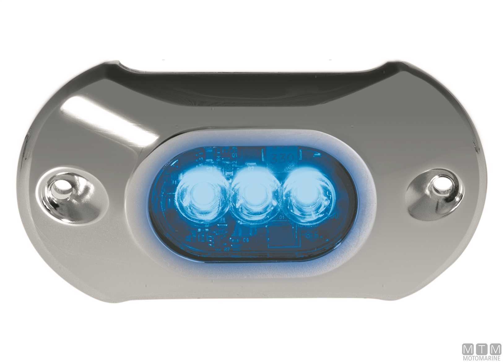 Faro subacqueo LED con cassa in polimero antiurto e copertura in Acciaio Inox AISI316. Cono di luce esteso a 80° con lenti infrangibili resistenti UV ed elettronica sigillata immersa in gel siliconico. Installazione sotto la linea di galleggiamento con foro da 14 mm e 2 viti di fissaggio. Driver integrato con circuito protetto da picchi di voltaggio e inversione di polarità. Attenzione: i fari devono sempre essere immersi nell'acqua per evitare guasti da surriscaldamento.