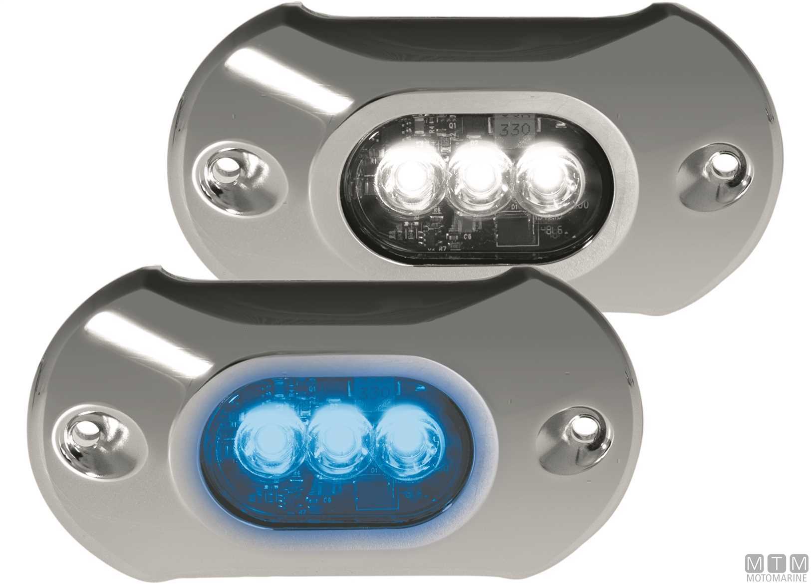 Faro subacqueo LED con cassa in polimero antiurto e copertura in Acciaio Inox AISI316. Cono di luce esteso a 80° con lenti infrangibili resistenti UV ed elettronica sigillata immersa in gel siliconico. Installazione sotto la linea di galleggiamento con foro da 14 mm e 2 viti di fissaggio. Driver integrato con circuito protetto da picchi di voltaggio e inversione di polarità. Attenzione: i fari devono sempre essere immersi nell'acqua per evitare guasti da surriscaldamento.