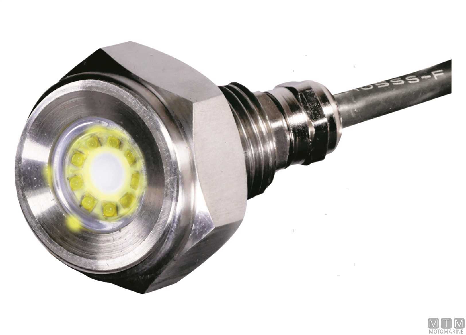 Faro subacqueo LED con Power-CREE LED di grande luminosità.↵ Grazie alla filettatura NPT da 1/2" si monta facilmente su ombrinali e tappi di scarico a poppa sotto la linea di galleggiamento. Corpo in Acciaio Inox 316 stagno IP68 con elettronica immersa in gel siliconico protettivo. Con scheda driver integrata e circuito di protezione termica. Voltaggio universale 9-32V.