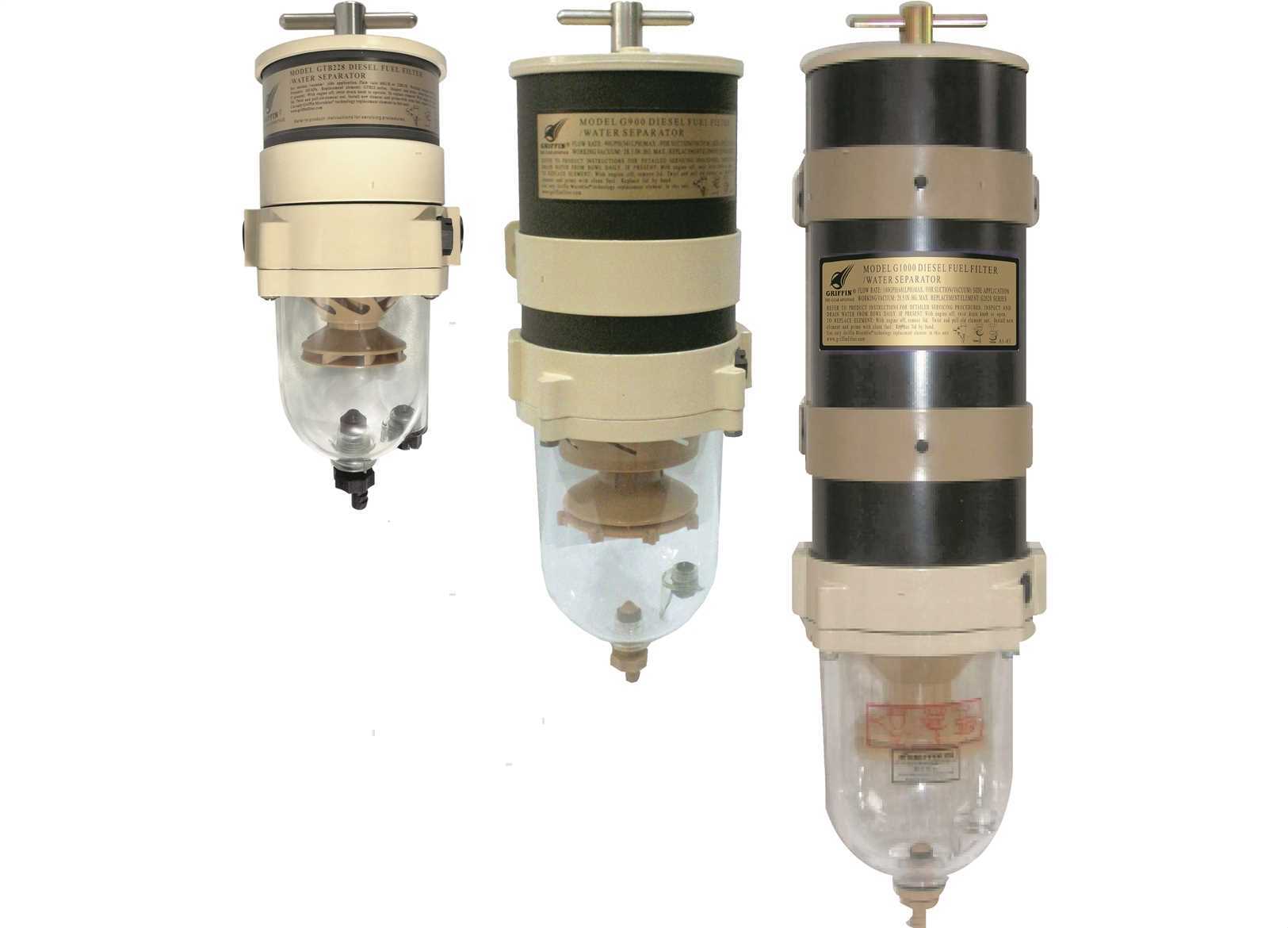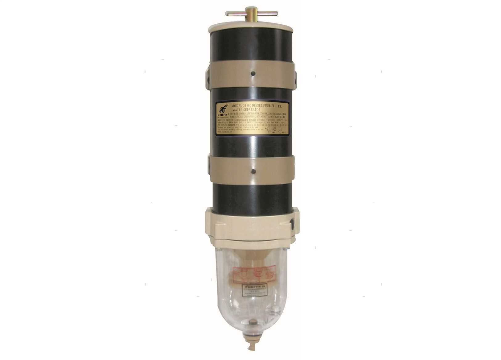 Filtri gasolio Griffin di qualità superiore con elementi filtranti multistadio MICROBLOC (99.8% di efficienza nel separare l'acqua dal gasolio). ↵I filtri vengono forniti di serie con cartuccia da 30 micron e senza raccordi che vanno acquistati a parte. ↵ ↵Possono sostituire i filtri Racor FG/FH.