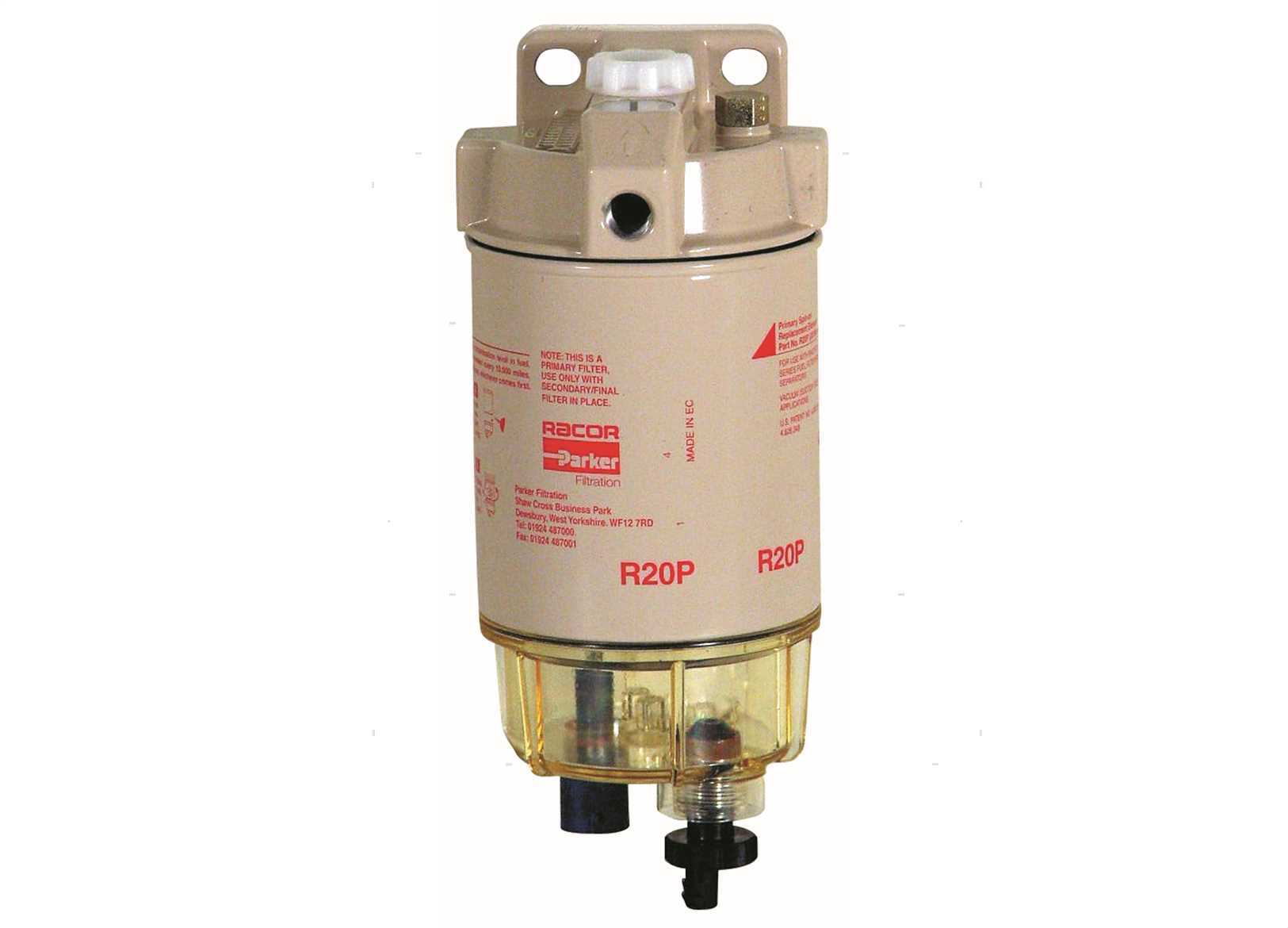 Filtri gasolio Racor con tecnologia AQUABLOC.↵Classificati di alta capacità (99% di efficienza nel separare l'acqua dal gasolio).↵Forniti con cartuccia da 30 micron. Possono sostituire i filtri Griffin tipo Spin-on.