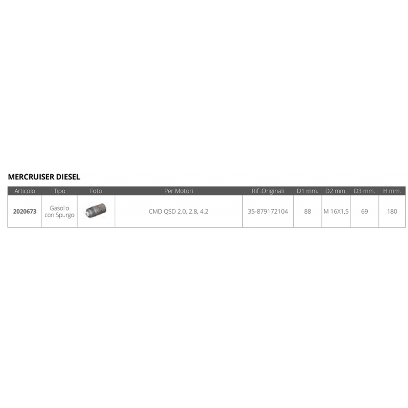 Filtro gasolio dim.Ø est.mm.87 altezza mm.170 passo M 16 X 1,5, dotato di spurgo, per motori CMD 2.8 rif.or. 35-879172104