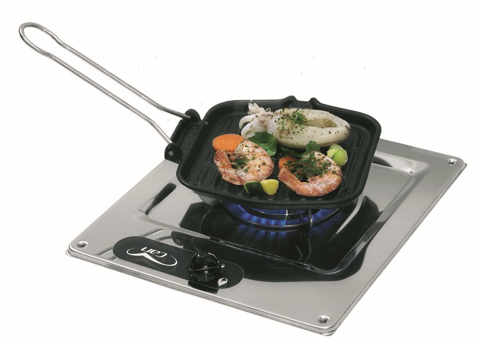 Fornello a incasso a 1 fuoco con piano in Acciaio Inox lucido e termosicurezze. ↵Altezza incasso 80 mm.