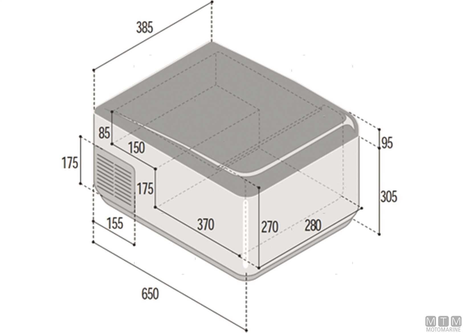 Frigo/Freezer portatile con unità refrigerante Danfoss bitensione 12/24V. Temperatura interna regolabile tra +10° e -10°C tramite termostato con LED oppure con display digitale. Consumo 43W. ↵C41L: con termostato LED ↵C41D: con termostato digitale