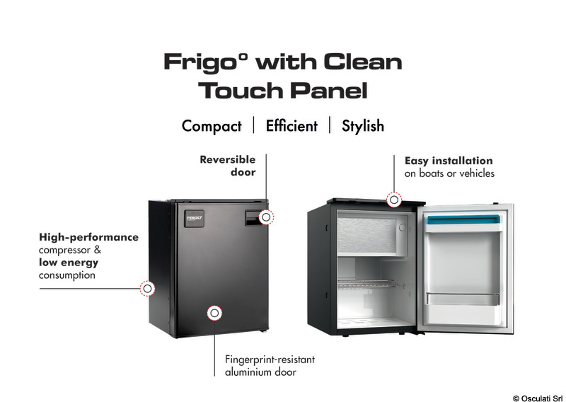 Frigo versatili e compatti. Facilmente installabili in qualsiasi imbarcazione o veicolo. Previsti di comodo scomparto congelatore. Equipaggiato da compressore Huayi, con comando di controllo interno per regolare la temperatura e pannello porta in alluminio spazzolato anodizzato clean touch.