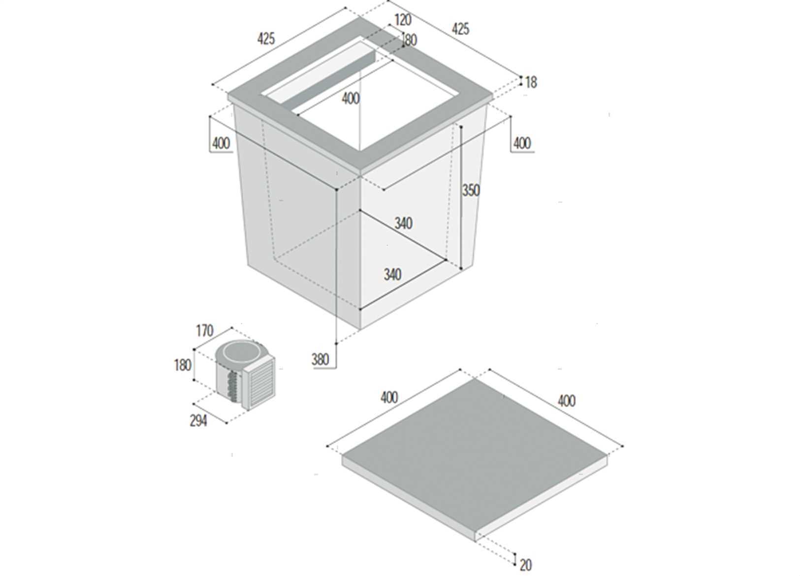 Frigorifero a pozzetto con unità refrigerante esterna Danfoss bitensione 12/24V.↵Consumo 31W. ↵H = Altezza ↵W = Larghezza ↵L = Lunghezza