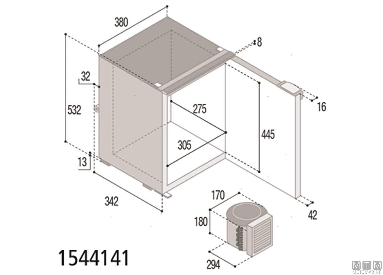 Frigoriferi Vitrifrigo con unità refrigerante esterna Danfoss bitensione 12/24V remotizzabile fino a 2 metri. ↵EN = con evaporatore Energy Saving. ↵H = Altezza ↵W = Larghezza ↵L = Lunghezza