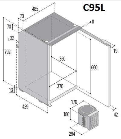 Frigoriferi Vitrifrigo con compressore esterno Danfoss Bitensione 12/24V Remotizzabile fino a 2 metri.