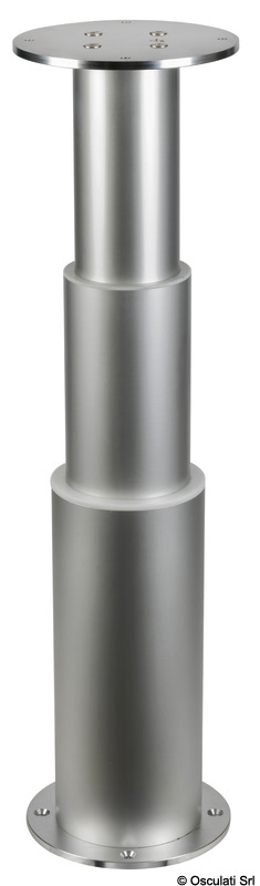 Gamba tavolo elettrica rotonda a tre stadi in alluminio anodizzato argento, adatta sia all'esterno sia all'interno barca, con antirotazione.