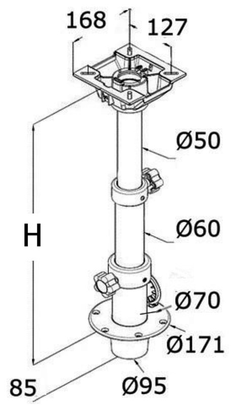 Gamba tavolo tritelescopica molla a gas removibile