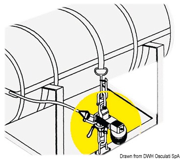 In accordo con le norme Solas. Si attiva ad una profondità tra 1,5 e 4 metri sganciando la zattera dal proprio alloggio e facendola gonfiare.