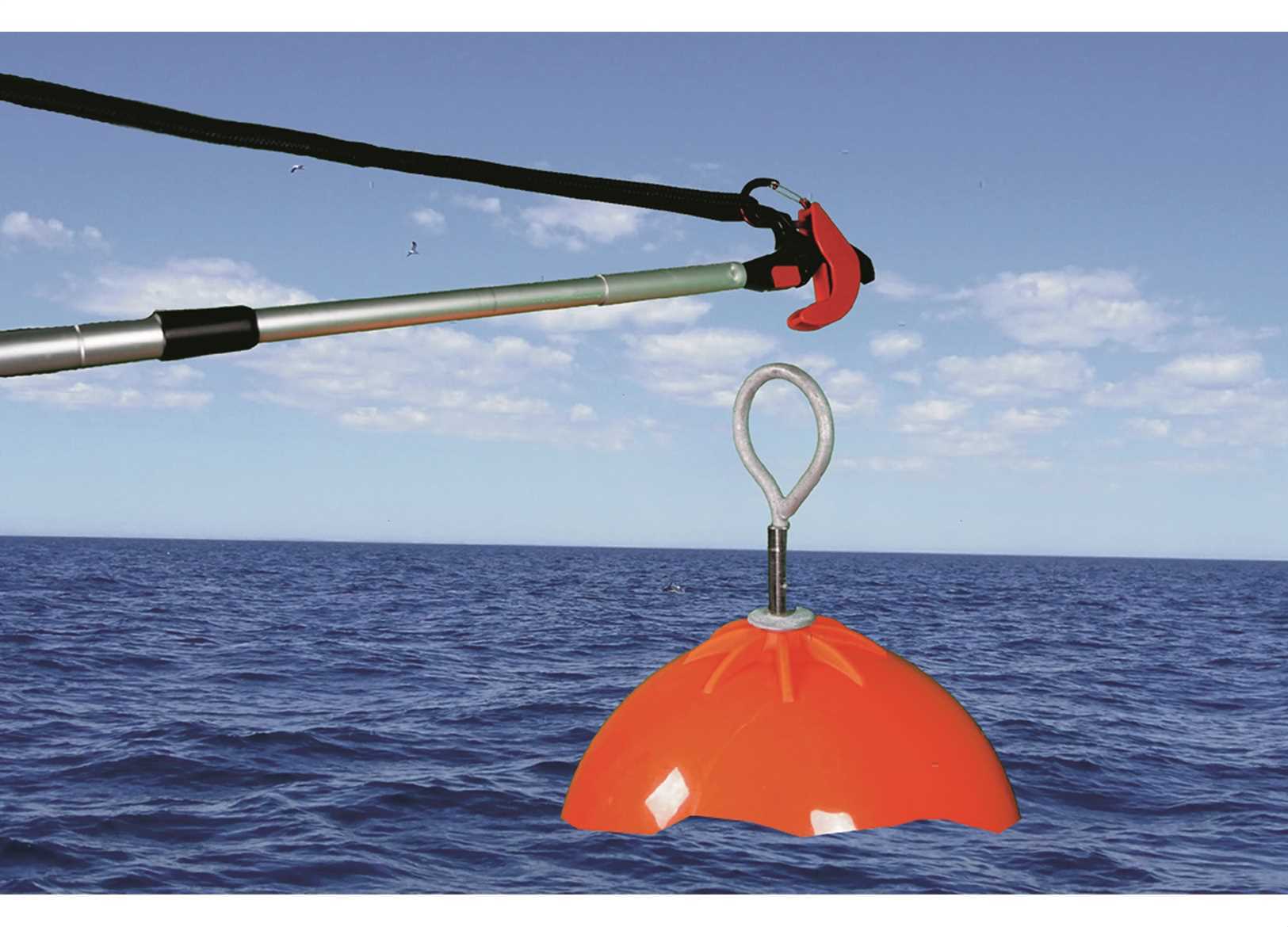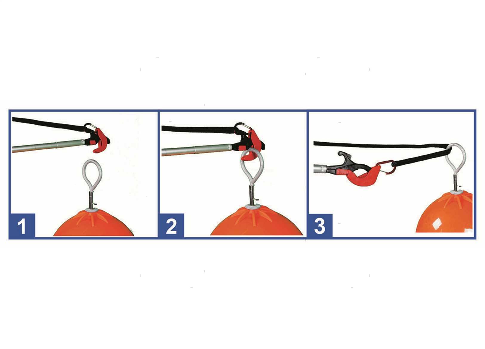 Gancio da ormeggio multifunzione Scrubbis Catching che può essere usato come mezzo marinaio oppure come gancio per passare la cima d'ormeggio nell'occhio della boa oppure nel golfare della banchina. Composto da gancio e manico telescopico, che va acquistato separatamente.