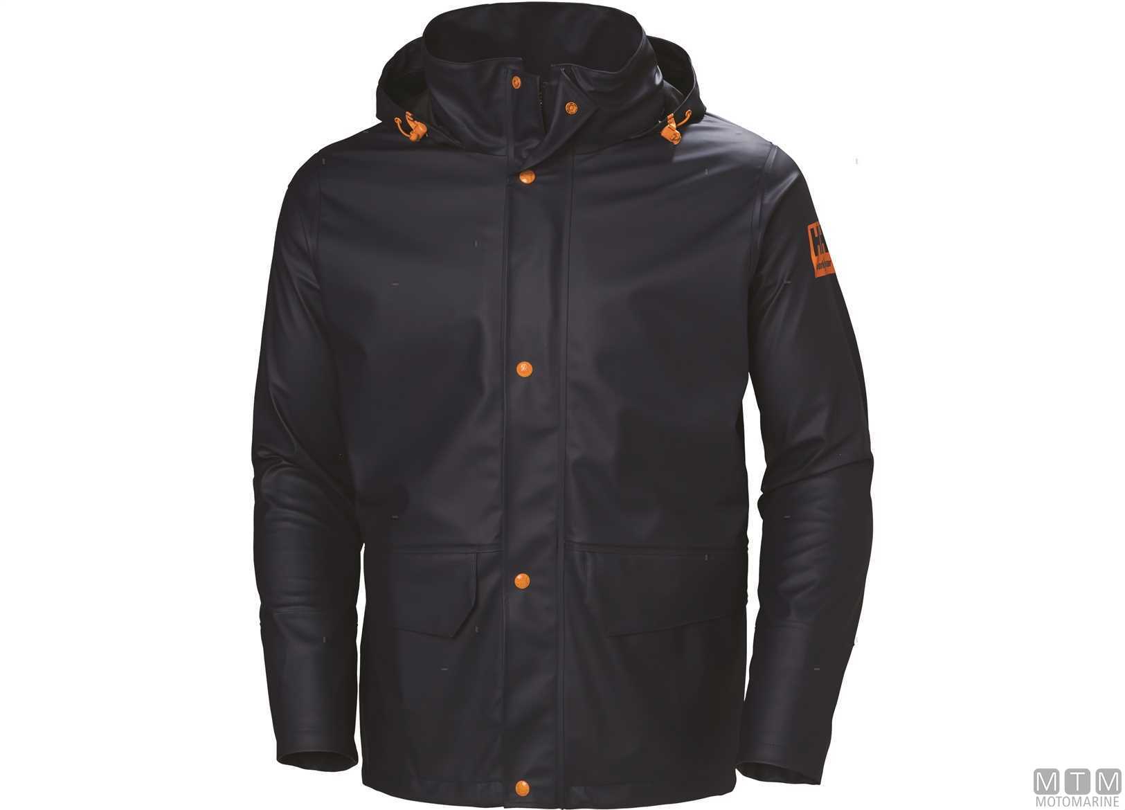 Giacca cerata Helly Hansen Gale Rain Jacket in tessuto di Poliestere 240 g/m2 spalmato di PU ideale per proteggersi dall'acqua durante la pesca o in qualsiasi attività a bordo e in banchina. Con chiusura a zip a doppia copertura di protezione, tasca interna con zip e fori per cuffie, due tasche frontali, cappuccio con cordino di regolazione, polsini in Neoprene, fondo giacca regolabile e targhetta portadocumento di identificazione.