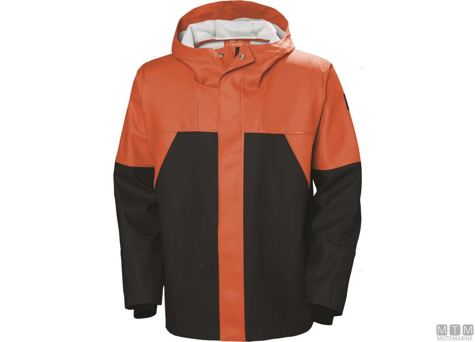 Giacca cerata Helly Hansen Storm Rain Jacket in tessuto di Poliestere 310 g/m2 spalmato di PVC ideale per proteggersi dall'acqua durante la pesca o in qualsiasi attività a bordo e in banchina. Con chiusura a zip a doppia copertura di protezione, tasca interna con zip e fori per cuffie, spalle senza cuciture, cappuccio con cordino di regolazione, polsini in Neoprene e targhetta portadocumento di identificazione.