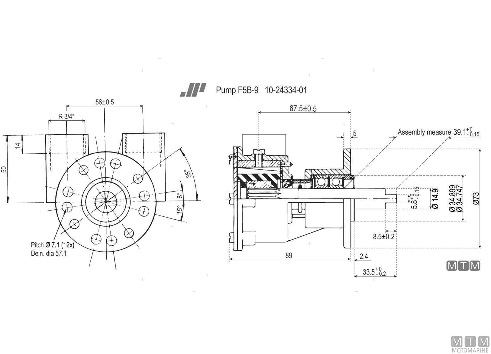 Pompa di raffreddamento in Bronzo con girante in Neoprene. Johnson ref 10-24571-01.