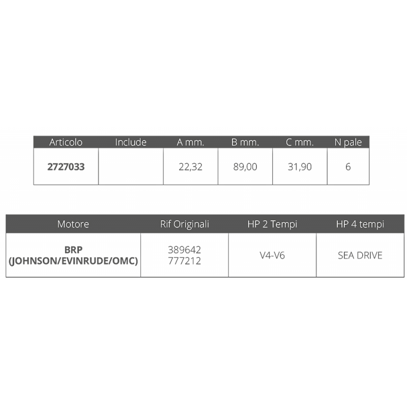 Rif. or.389642 per motori 2T V4-V6, dim. Ø int.mm.22,32 Ø est.mm.89 spessore mm.31,9, nr.6 pale