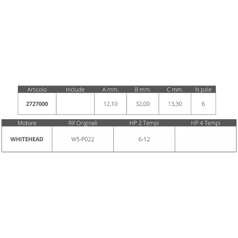 Rif. or. W5-P022 per motori 2T 6-12 HP, dim. Ø int.mm.12,1 Ø est.mm.32 spessore mm.13,3, nr.6 pale