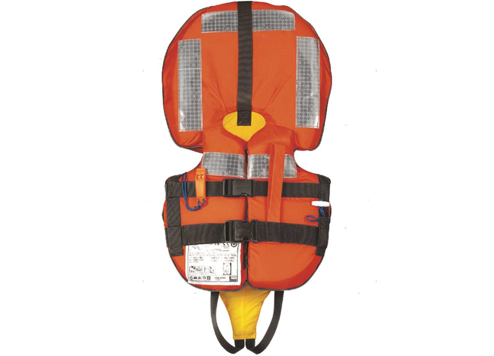 Giubbetto salvagente EN ISO 12402-3 da 150N per neonati. Approvato per navigazione da diporto d'altura oltre le 6 miglia dalla costa. Masse galleggianti studiate per garantire un'ottimale posizione in acqua di neonati e bambini. Chiusura con cerniera e fascia addominale regolabile, maniglia di recupero, nastri riflettenti e fischietto. 150N - Per l'uso in mare aperto, anche per persone senza conoscenza.