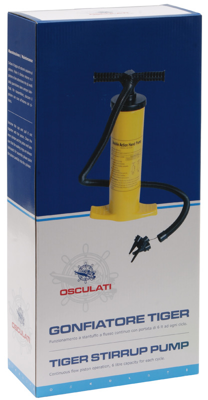 con portata di circa 4 l ad ogni ciclo. Molto più’ veloce dei tradizionali gonfiatori a pedale. Completo di tubo e raccordi di vario diametro. Gonfia e sgonfia.