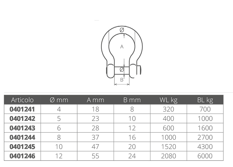 Moschettone in acciaio inox 316, Diam. 10mm
