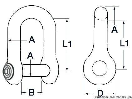Grillo grande tipo a "D", zincato, Diam. 5mm