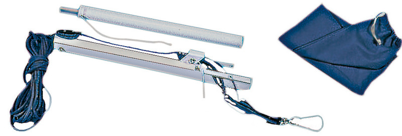 In alluminio, progettata per calare sul tender il motore fuoribordo. Si può togliere e mettere in pochi secondi essendo sfilabile dal supporto. Verniciata bianca con resine epossidiche, completa di paranco con bozzelli inox più moschettone inox, universale per qualsiasi imbarcazione, fornita di sacca.
