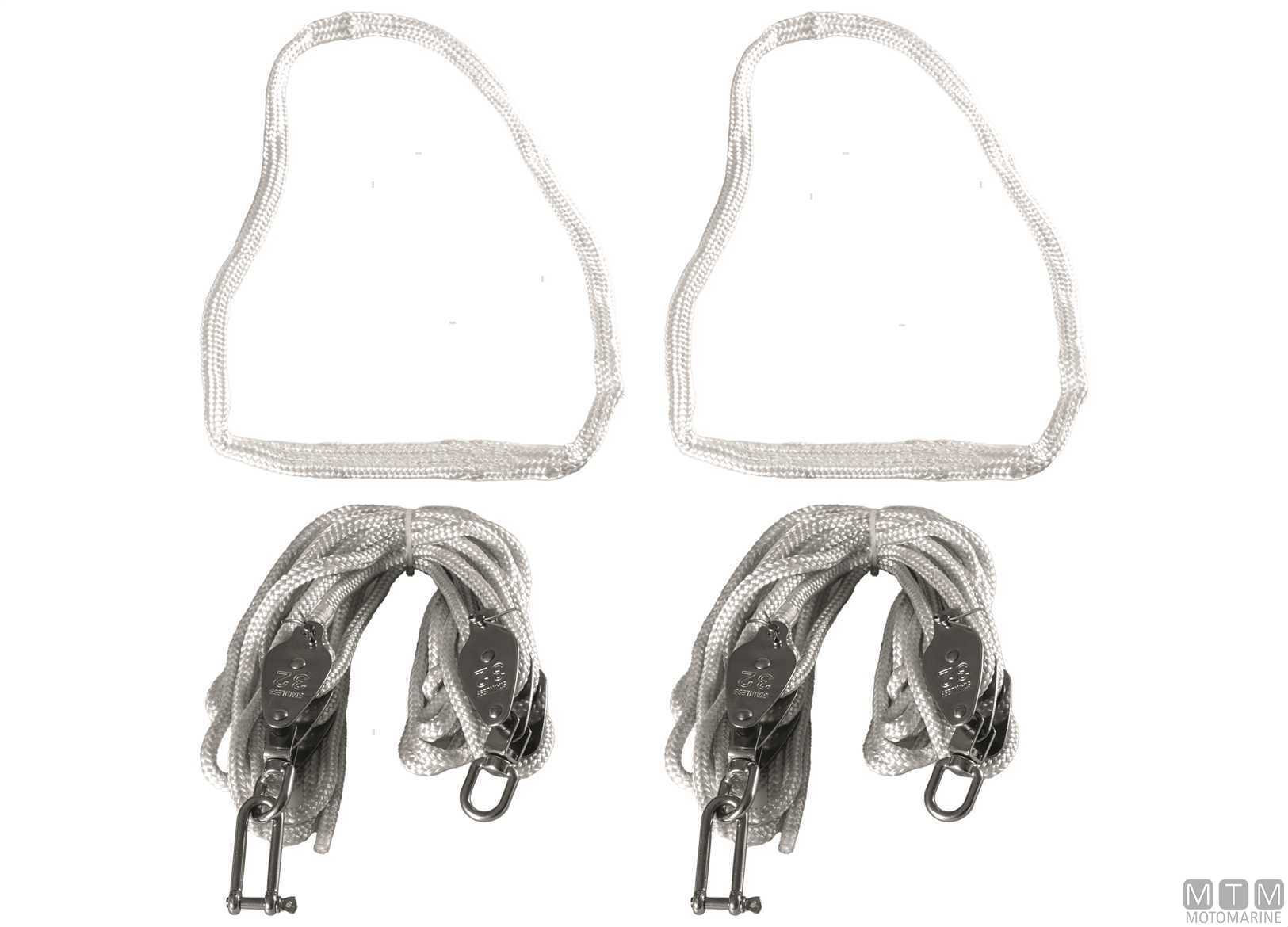 Coppia gruette per montaggio su base in tubo di Acciaio Inox lucidato a specchio. Complete carrucole, bittine e moschettoni. Non necessitano il foro di montaggio.