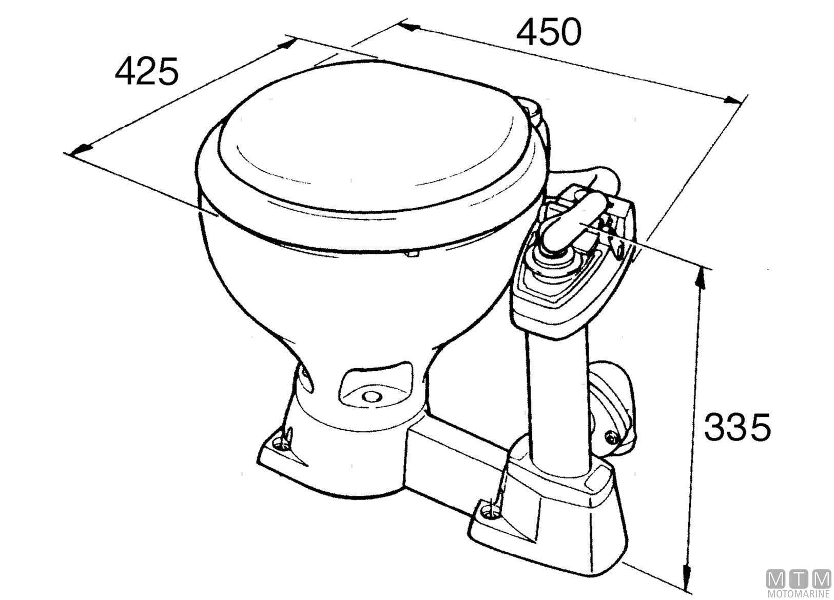 Toilet Jabsco Compact con pompa manuale e sistema Twist & Lock che blocca ogni riflusso dal sistema acque nere per una maggiore sicurezza e comfort a bordo. ↵Entrata ø 20 mm (3/4”) uscita ø 38 mm (1” 1/2).