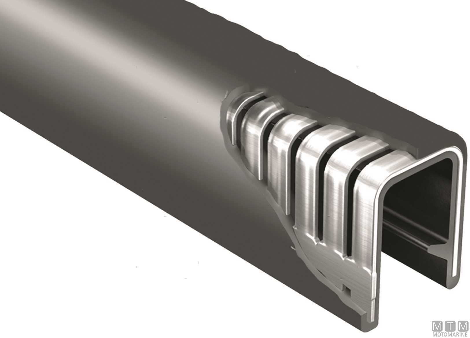 Guarnizione Trim-Lok a tenuta stagna specifica per osteriggi, boccaporti e portelli. Composta da un anello in gomma EPDM espansa e profilo in PVC. Si monta facilmente grazie alla struttura con anima in Alluminio segmentato che si adatta alla forma del bordo da coprire. La linguetta di blocco garantisce una tenuta perfetta anche senza adesivo. Confezione da 15 metri.