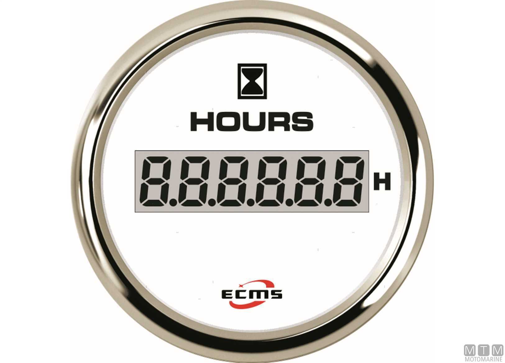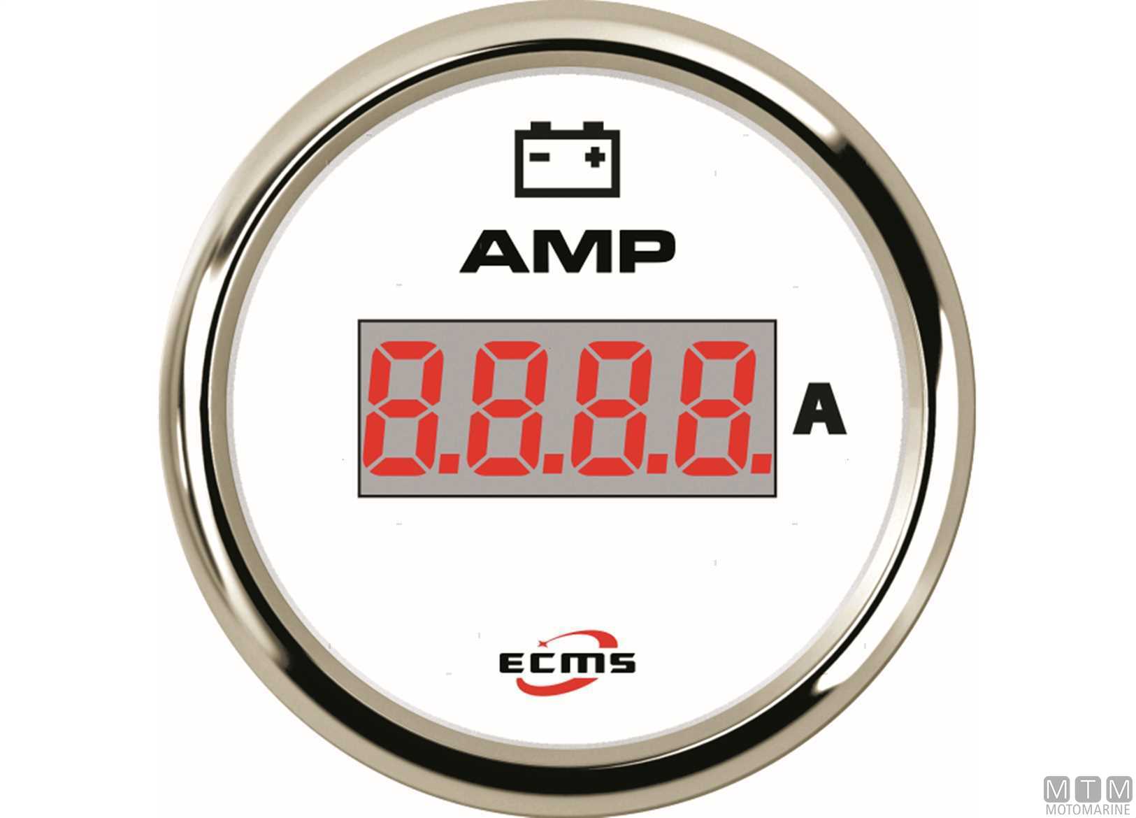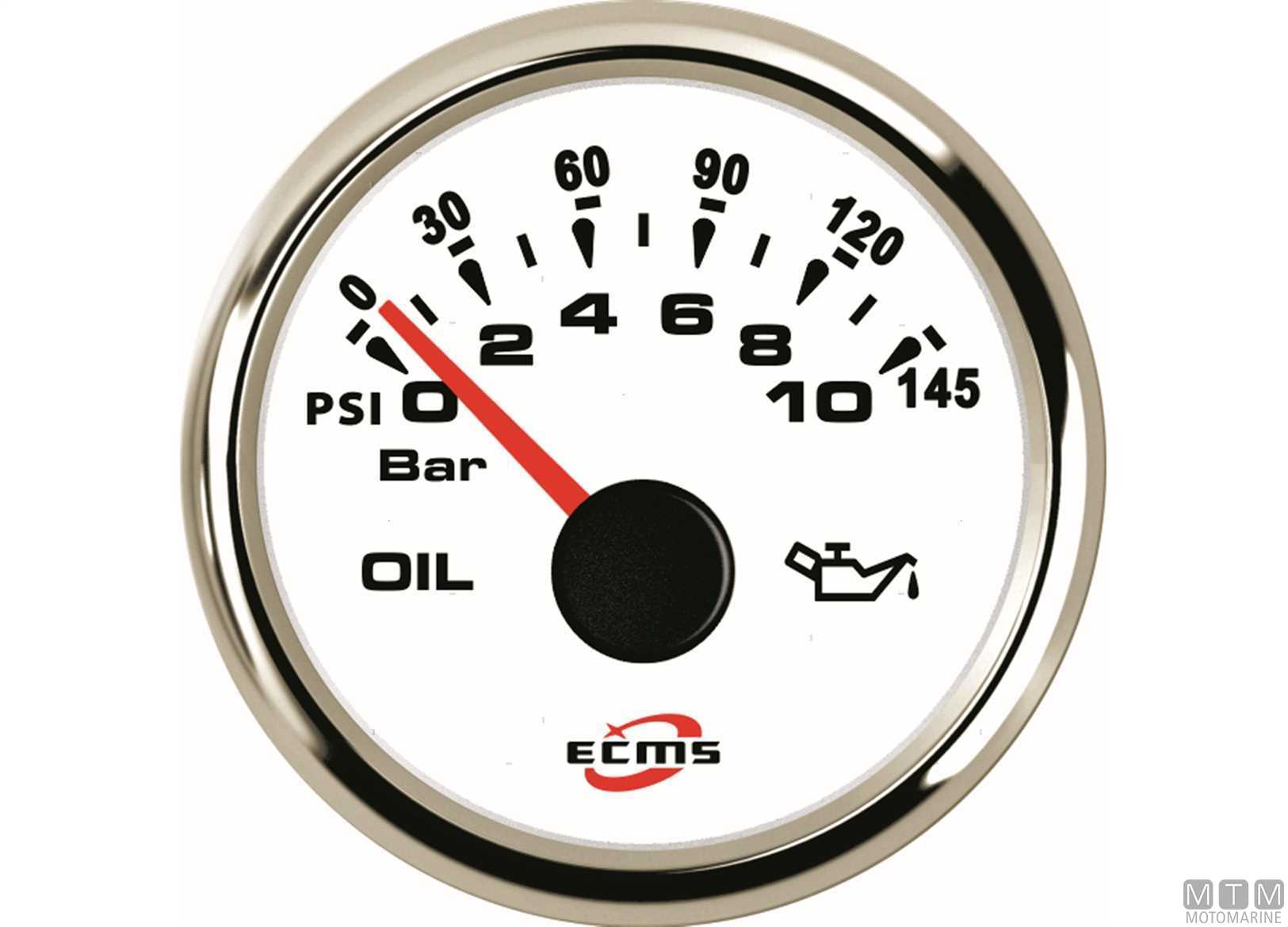 Strumentazione Ecms White Chrome 9-32V completa di cavetti con connettore Molex, cornice in Acciaio Inox 316 con finitura cromata e frontalino impermeabile IP67 con lente bombata anti-appannamento. Quadrante retroilluminato con luce LED personalizzabile in vari colori. ↵Gli indicatori di livello si possono impostare su qualsiasi valore di impedenza tramite il tasto posteriore di configurazione. Sono pre-impostati sul valore standard 0-190 Ohm. ↵Gli indicatori pressione olio da 5 e 10 bar sono compatibili con sensori standard (10-180 Ohm), mentre il 30 bar è compatibile solo con sensori elettronici (0,5-4,5V). ↵Gli amperometri sono completi di sensore (shunt) per misurare la corrente.