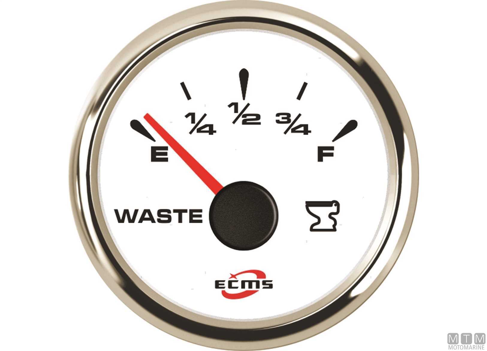 Strumentazione Ecms White Chrome 9-32V completa di cavetti con connettore Molex, cornice in Acciaio Inox 316 con finitura cromata e frontalino impermeabile IP67 con lente bombata anti-appannamento. Quadrante retroilluminato con luce LED personalizzabile in vari colori. ↵Gli indicatori di livello si possono impostare su qualsiasi valore di impedenza tramite il tasto posteriore di configurazione. Sono pre-impostati sul valore standard 0-190 Ohm. ↵Gli indicatori pressione olio da 5 e 10 bar sono compatibili con sensori standard (10-180 Ohm), mentre il 30 bar è compatibile solo con sensori elettronici (0,5-4,5V). ↵Gli amperometri sono completi di sensore (shunt) per misurare la corrente.