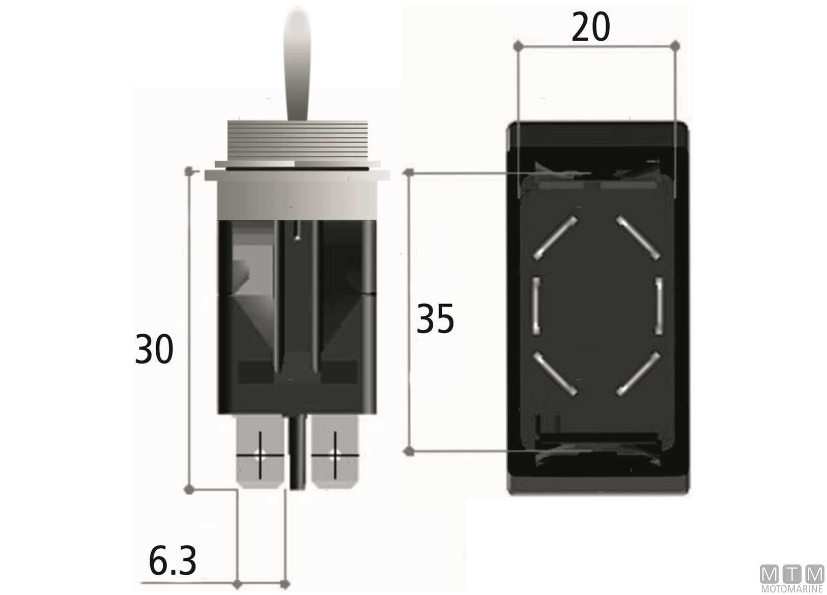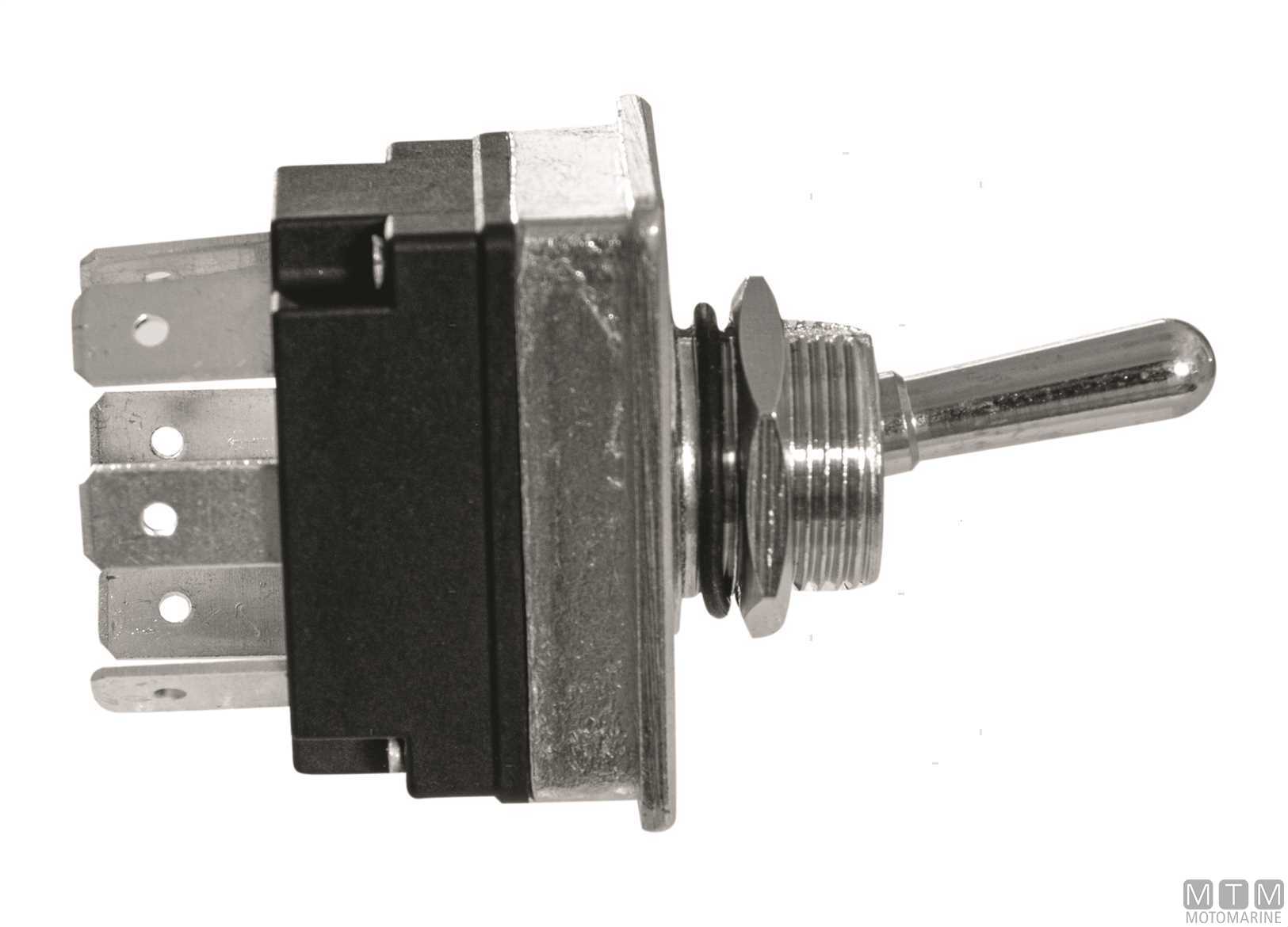 Interruttore a levetta impermeabile IP68 con guarnizione in Nitrile e luce di funzione LED rosso/verde. Corpo inossidabile amagnetico con circuito bipolare 12/24V-20A.