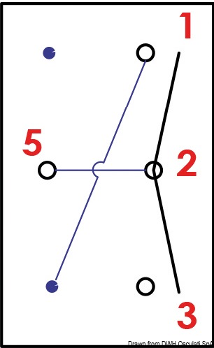 ON1 = circuito 1 ON1+2 = circuito 1+2 Luci di via scafi fino a 12 m: ON1 = bianco 360° ON1+2 = bianco 360°+rosso/verde 112,5° |