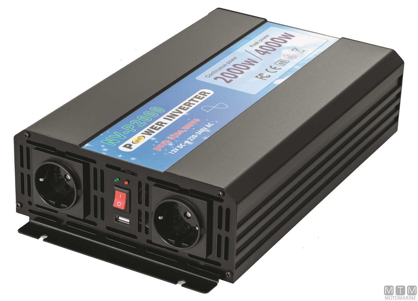 Inverter ES100 Power ad alta efficienza a onda sinusoidale pura per convertire la corrente continua 12/24V delle batterie di bordo in corrente alternata 220V. Efficienza di conversione pari al 90% con distorsione armonica inferiore al 3%. Ideali per alimentare dispositivi elettrici ed elettronici sensibili agli sbalzi di tensione. Il valore indicato in potenza W è continuo.