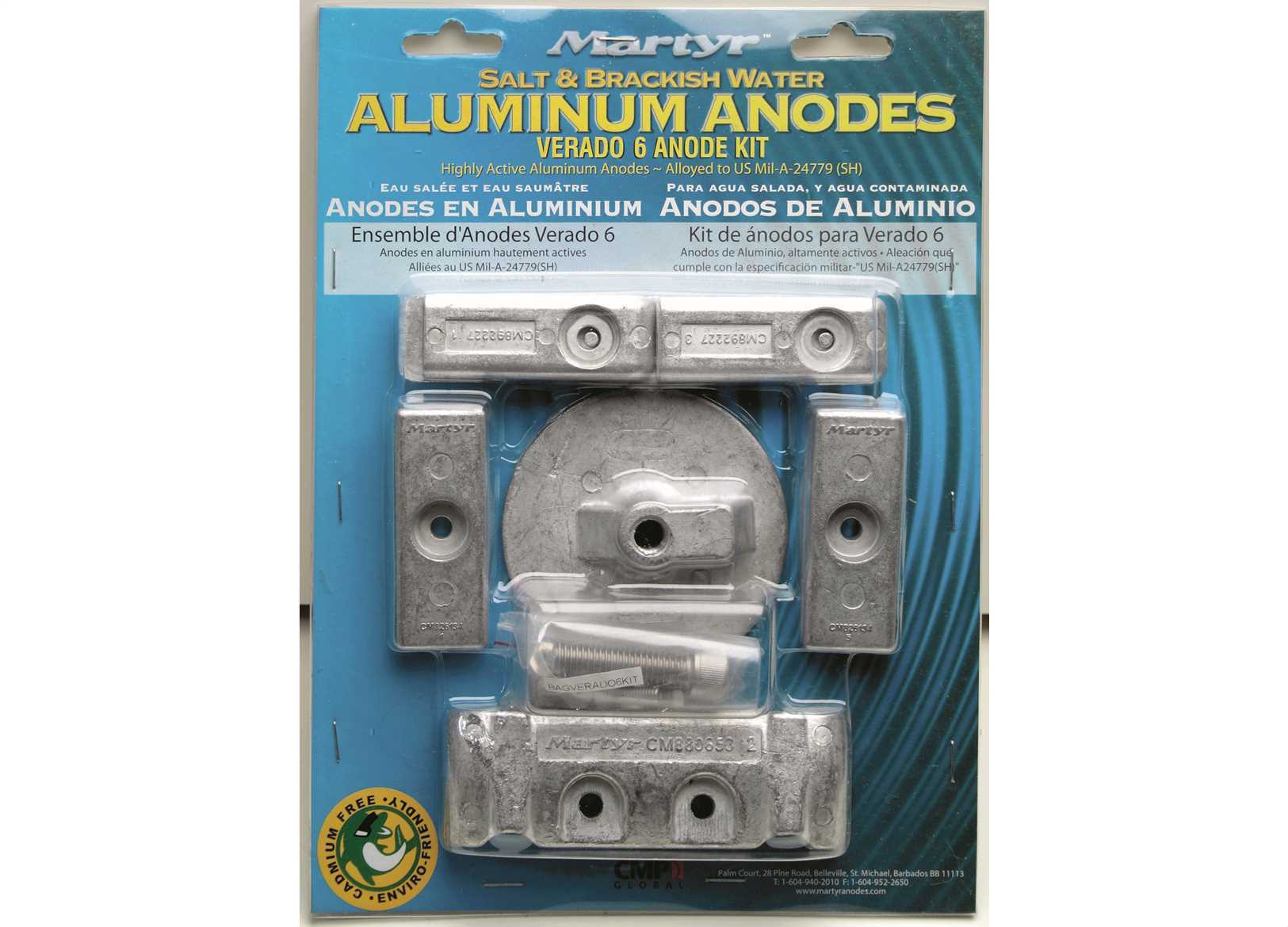 Kit Anodi Martyr "Genuine Type" Verado 6 in lega di Alluminio M2.↵ • Proteggono il 50% più a lungo del tradizionale anodo in zinco↵ • Pesano il 50% in meno rispetto ai tradizionali anodi di zinco↵ ↵Il Kit contiene:↵ 1 x 880653↵ 4 x 893404↵ 2 x 826134Q↵ 1 x 76214Q5