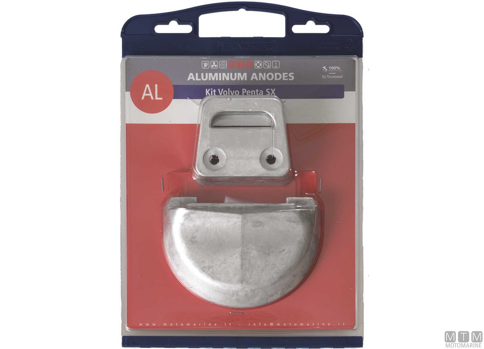 Kit Anodi Tecnoseal in Aluminio Volvo Penta SX↵ • Proteggono il 50% più a lungo del tradizionale anodo in zinco↵ • Pesano il 50% in meno rispetto ai tradizionali anodi di zinco↵↵Il kit contiene:↵1 x 3586461↵1 x 3855411