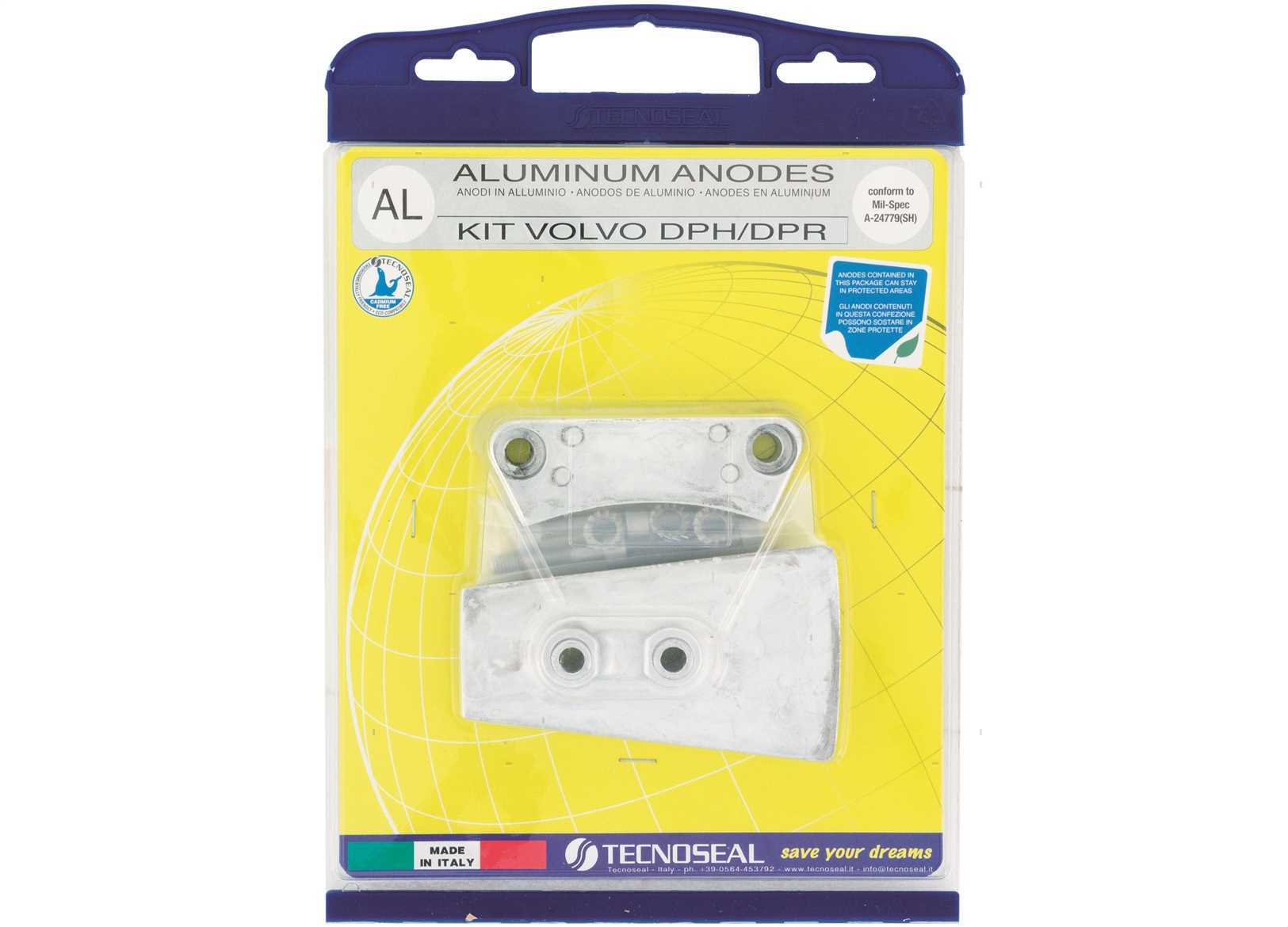 Kit Anodi Tecnoseal in Alluminio Volvo Penta DPH↵ • Proteggono il 50% più a lungo del tradizionale anodo in zinco↵ • Pesano il 50% in meno rispetto ai tradizionali anodi di zinco↵↵Il kit contiene:↵1 x 3588746↵1 x 3588770