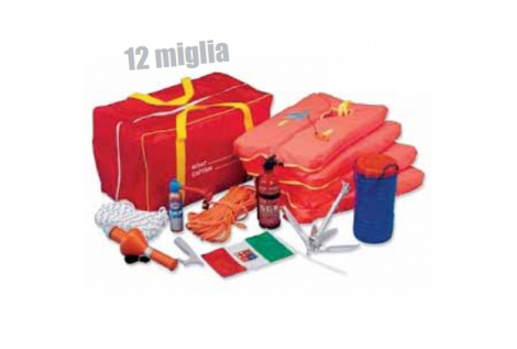 Kit di dotazione di sicurezza obbligatorie per la navigazione entro le 12 miglia dalla costa, indicate per imbarcazioni da diporto.