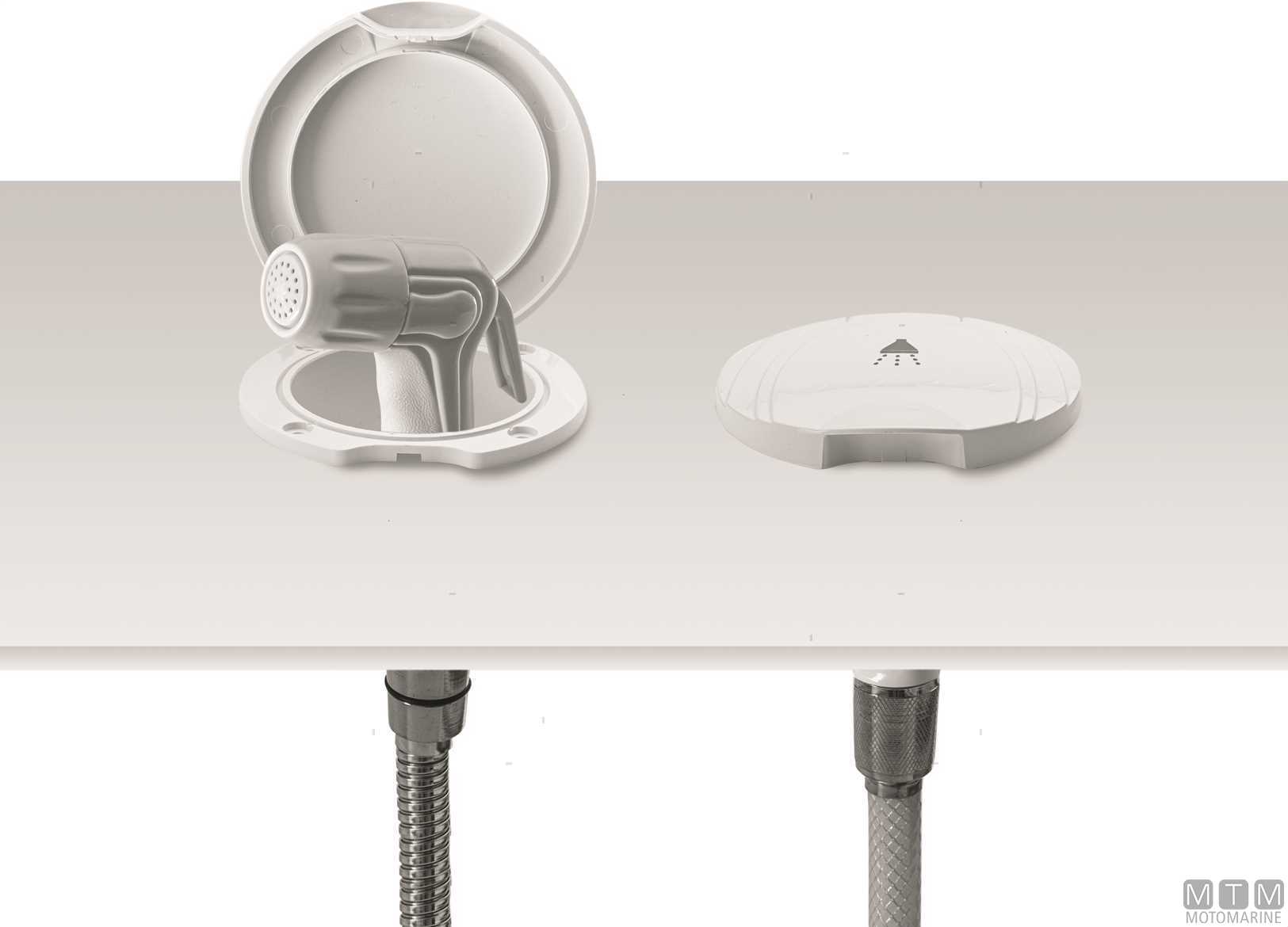Kit doccetta Alien - Universal-Box ↵Composto da Doccetta Alien e Box in Abs Bianco o Cromato, per montaggio a incasso sia verticale che orizzontale.↵Il kit va completato con tubo doccia in PVC o Acciaio Inox a scelta.