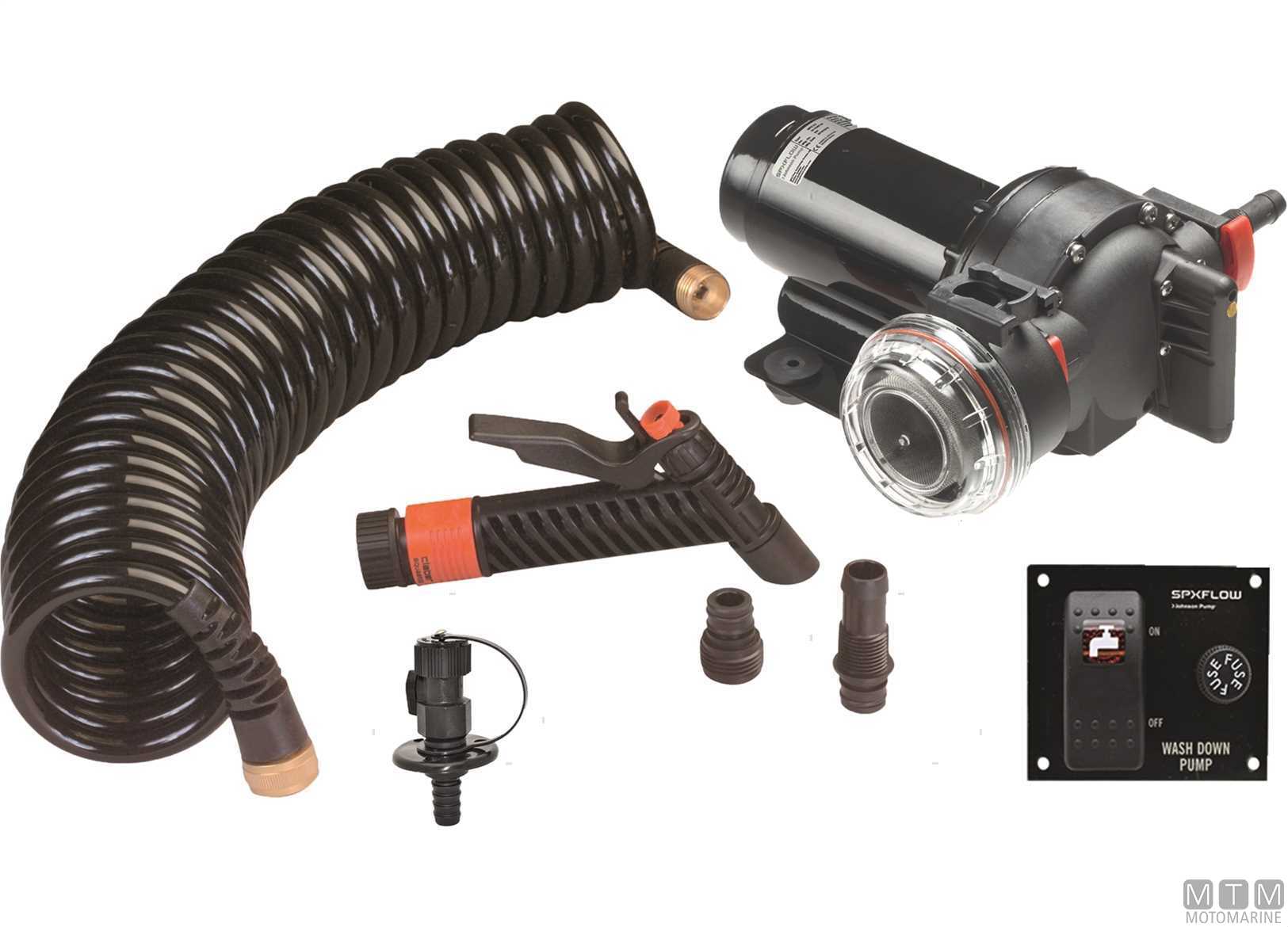 Kit pompa lavaggio Aqua Jet 5.2 per lavaggio ponte, tender, sentina, automobili etc. Completo di pistola, tubo, filtro e raccordi portagomma 14/20 mm.