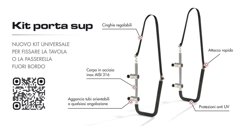 Ogni braccio dispone di una protezioni in PVC schiumato ad alta intensità, che protegge il SUP o la passerella dalle abrasioni e cinghie regolabili e facilmente removibili.