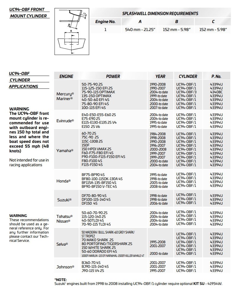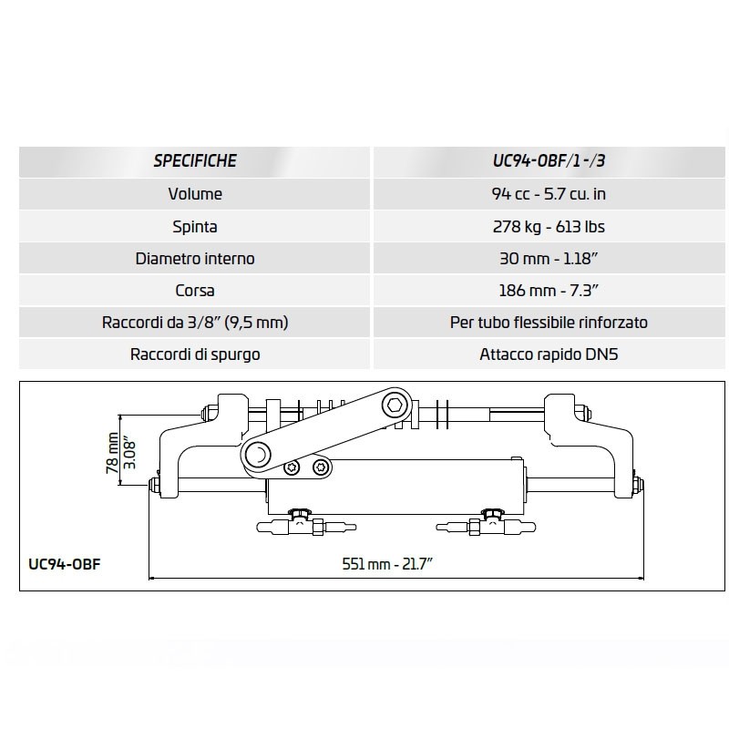 Ultraflex HYTECH-OBF/1 M-60 Timoneria idraulica per motori fuoribordo fino a 175HP, utilizza cilindro a montaggio centrale bilanciato.